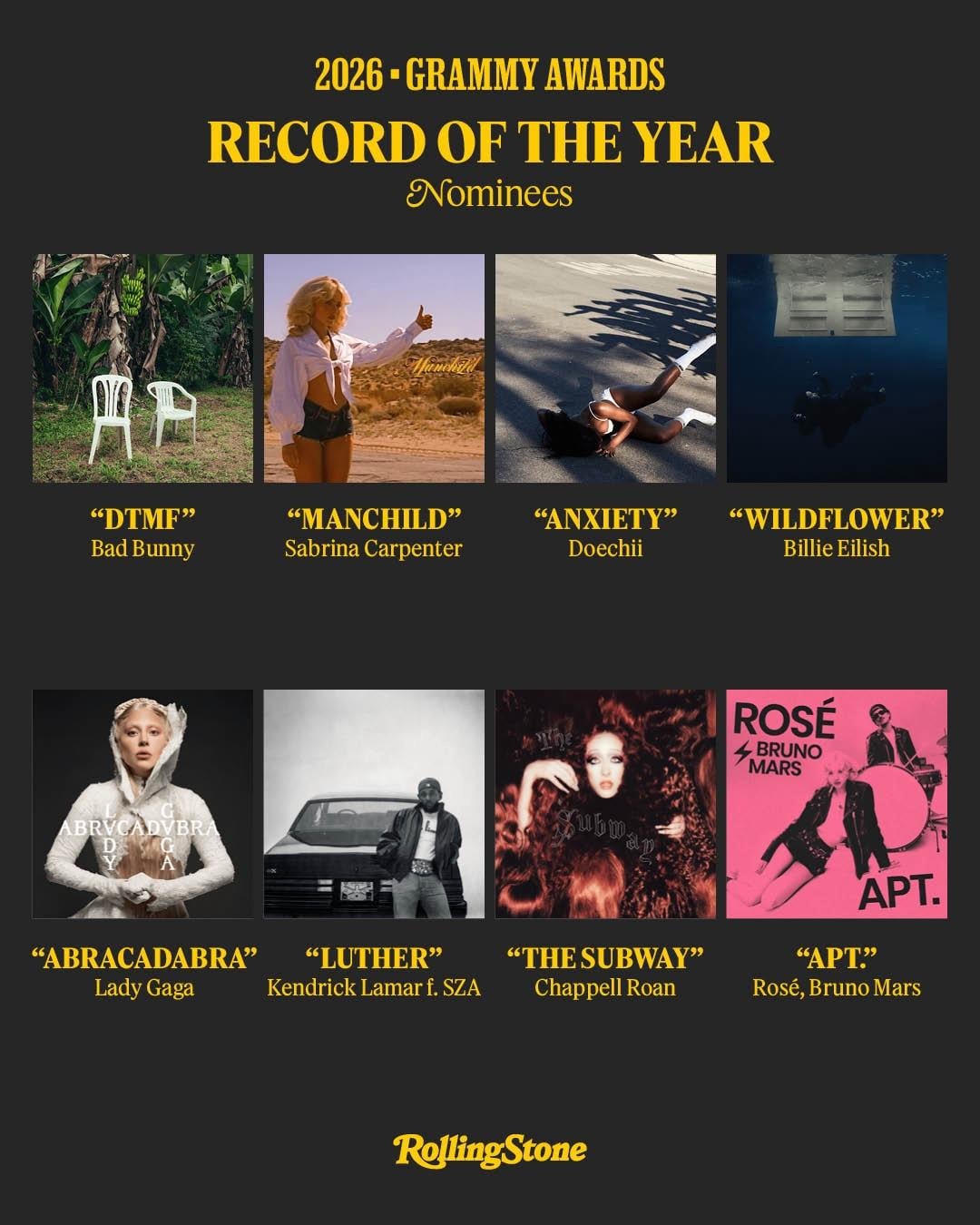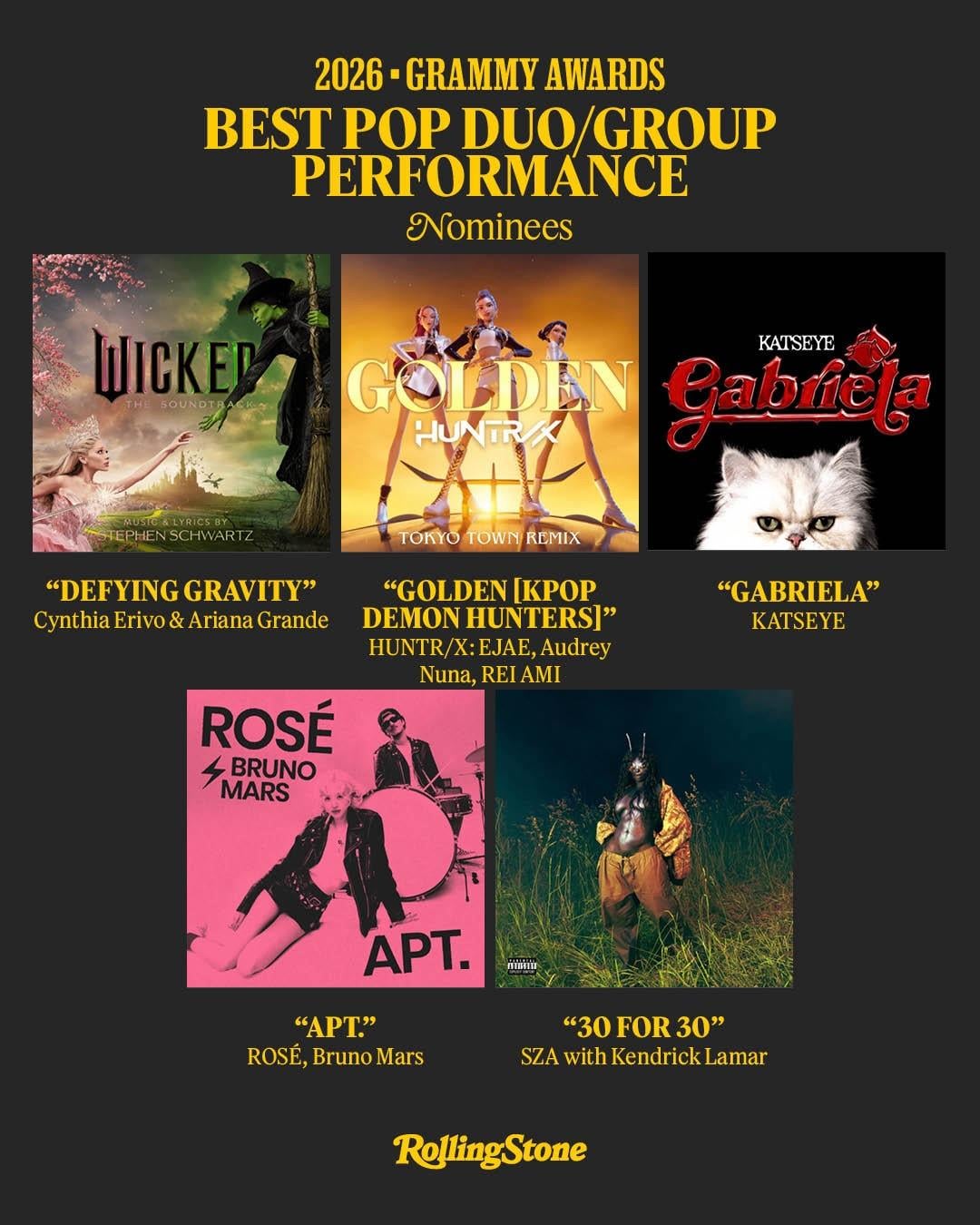 251107 ROSÉ & Bruno Mars – ‘APT.’ has been nominated for SONG OF THE YEAR, RECORD OF THE YEAR, and BEST POP DUO/GROUP PERFORMANCE at the 2026 GRAMMY AWARDS!