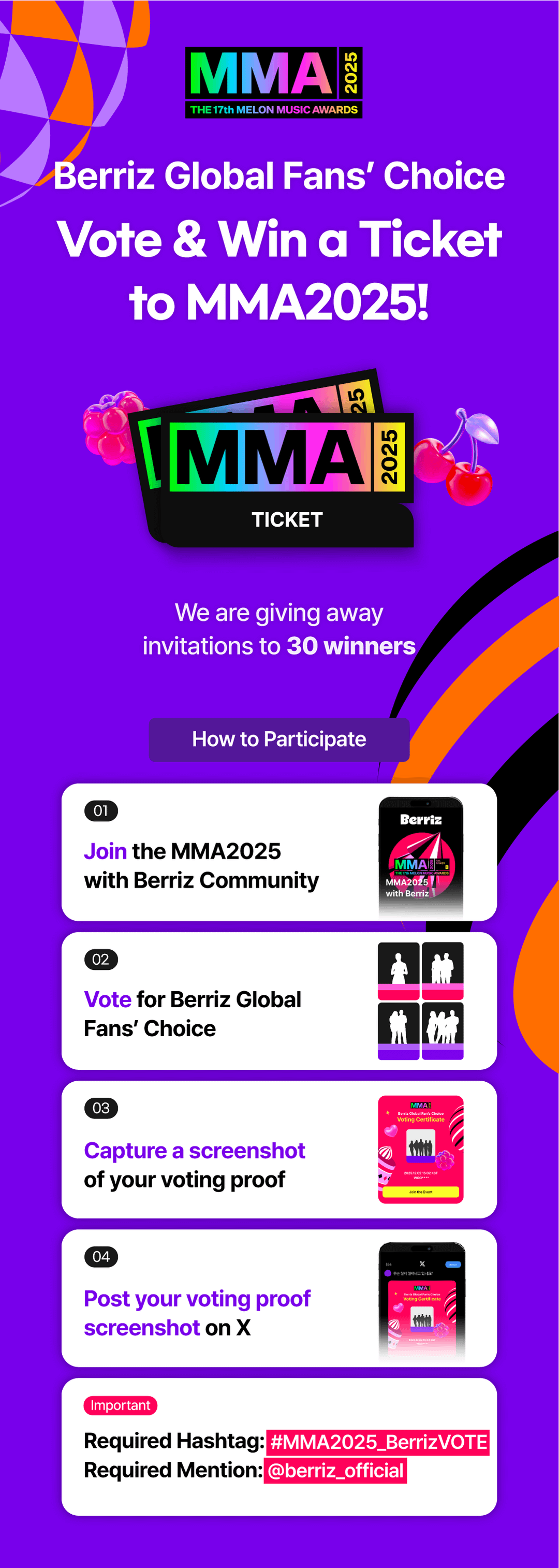 https://link.berriz.in/web/main/mma2025withberriz/vote aespa Awards Berriz Choice Event fans Giveaway global Guide Melon music nominated tickets Voting