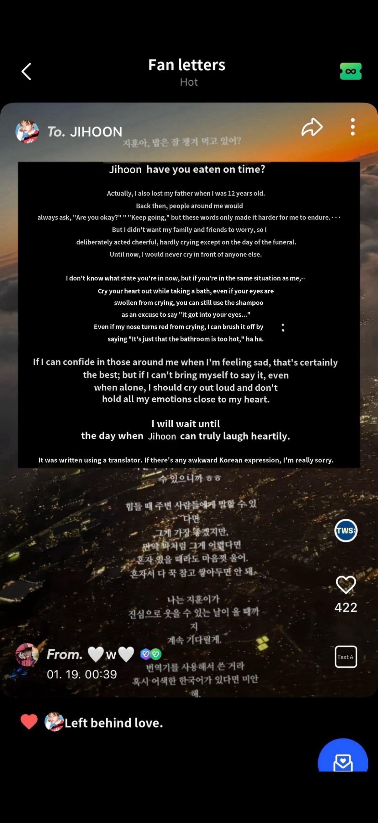 Share Pinterest Facebook Twitter LinkedIn Bluesky Threads “I will wait until the day jihoon truly laugh heartily .” I really want to cry!!!!! [UNCENSORED kpop Kpop Uncensored