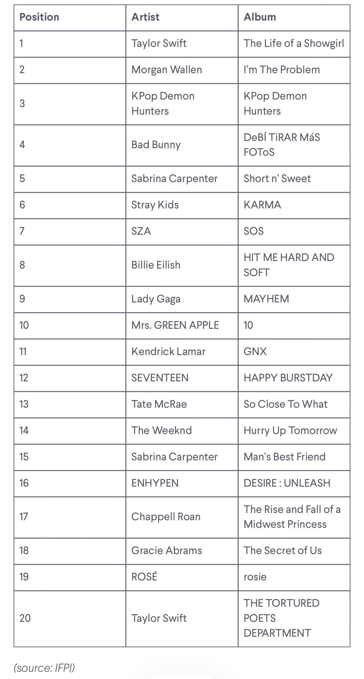 ROSÉ – ‘rosie’ makes history as the first female K-pop soloist album on IFPI Global Album Chart — ranks #19 best-selling album of 2025! blackpink BLɅϽKPIИK rosé