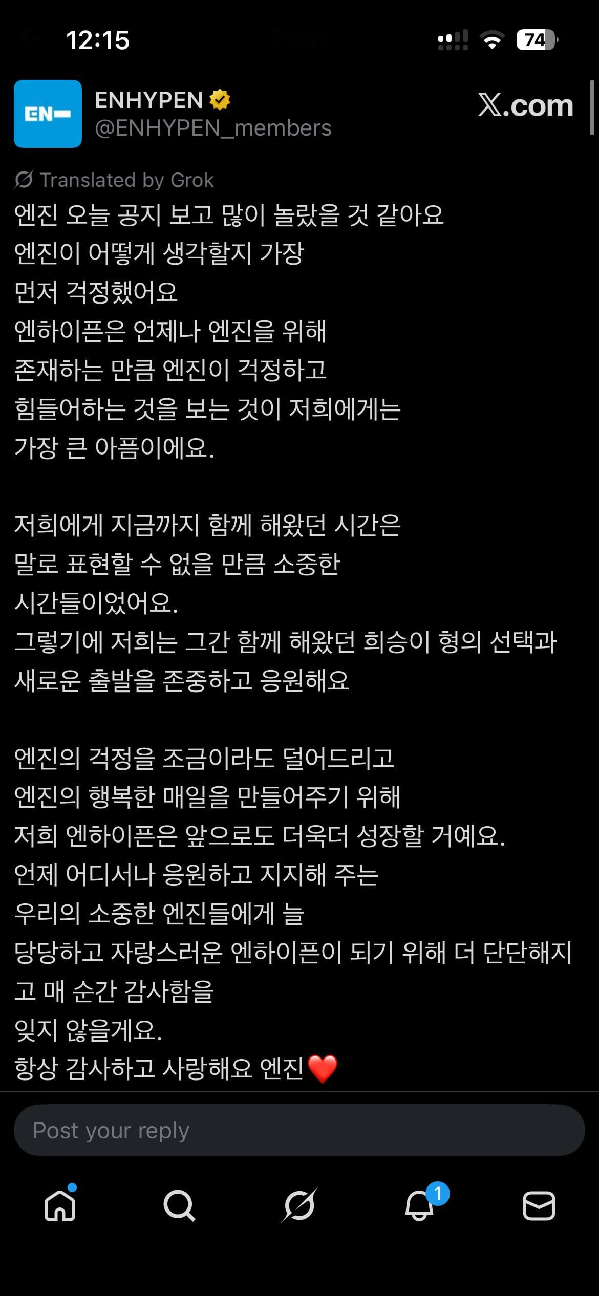 To ease ENGENEs’ worries even a little and to create happy days for ENGENEs, we, ENHYPEN, will continue to grow even more in the future.