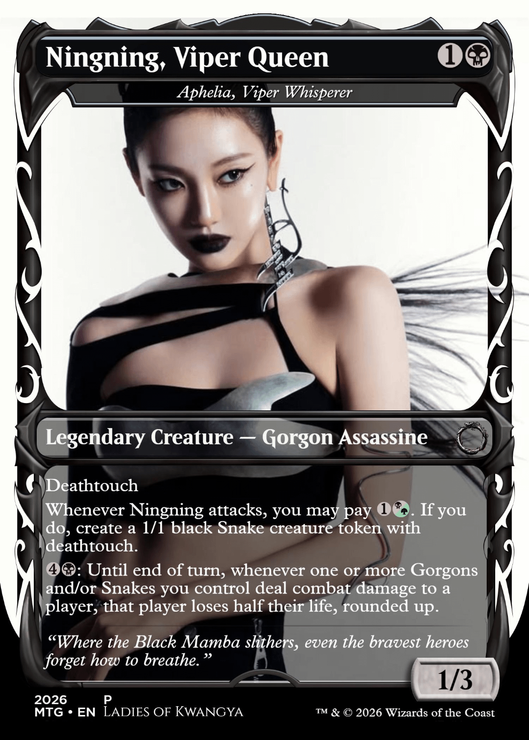 I made Aespa themed magic proxies. Their concepts are so cool that it's really easy to find a concept to do. aespa gathering Magic Proxies