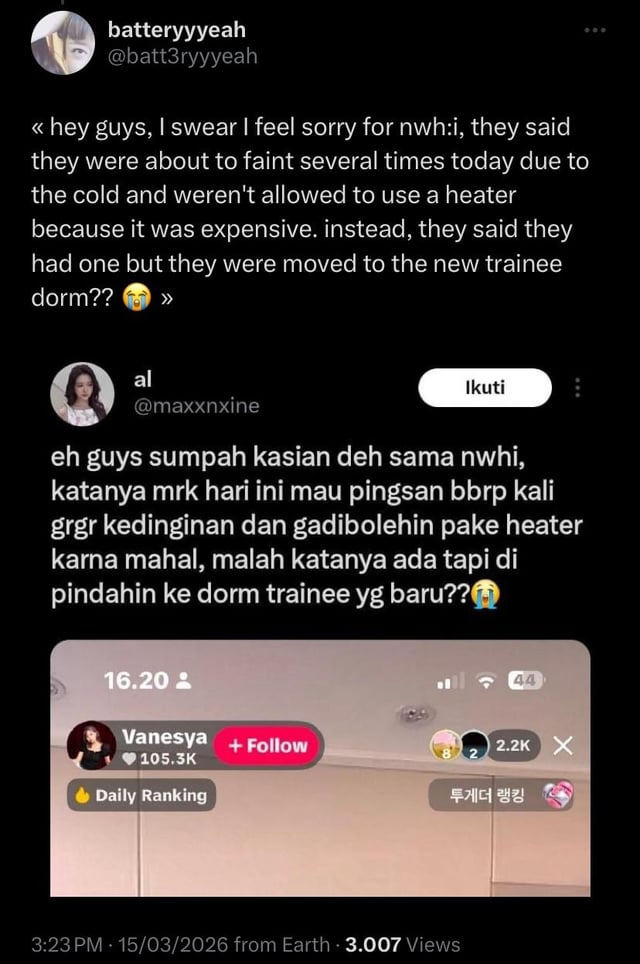 (This next part is a bit messy as I don't know Indonesian and some things I tried to translate weren't clear, so take everything with a grain of salt. If any Indonesian can help with context, I'll leave the link to a thread made by a fan: https://x.com/batt3ryyyeah/status/2038572114421137714)