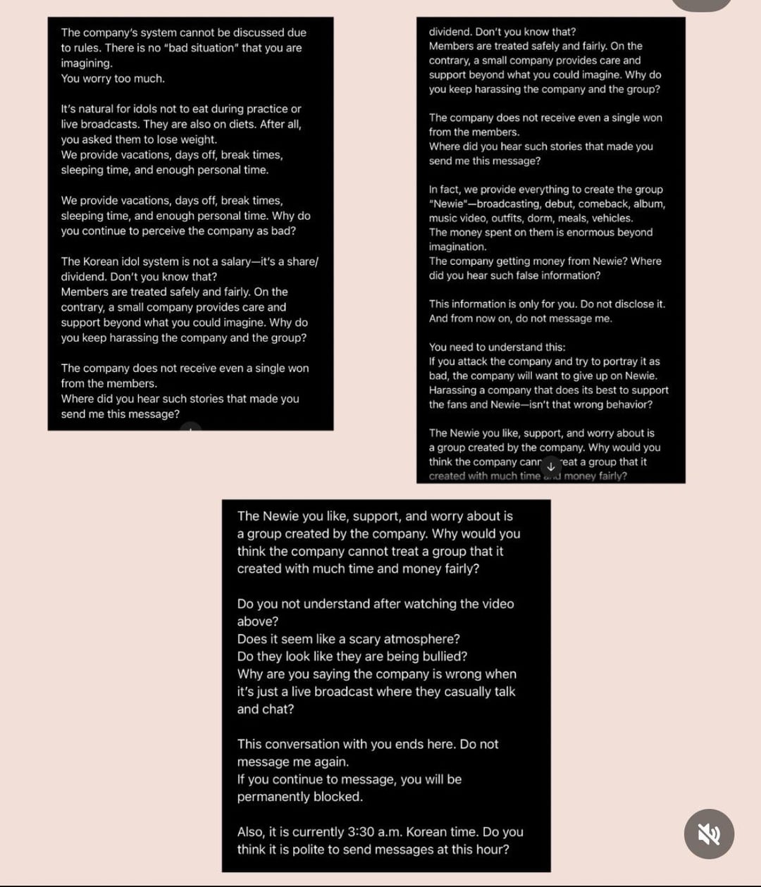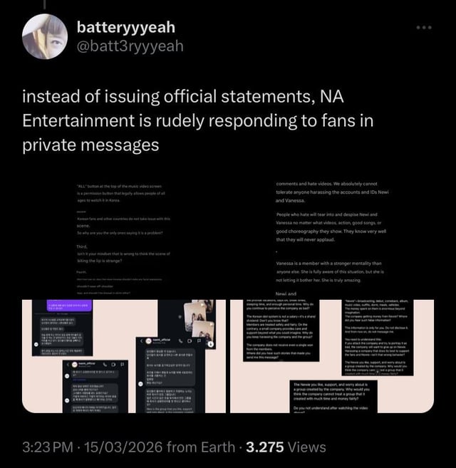 I agree with some fans saying that just because Na Ent history was known doesn't change the fact that the members are being mistreated and that shouldn't be downplayed and brushed off with "they deserve it because they knew it" or similar insensitive comments. Kpop companies get away with their actions because everyone is more focused on saying "we told you so" to the members instead for holding companies accountable. I can't blame them for thinking maybe it was going to go well for them, other companies did better with newer groups than older ones, and I wouldn't be surprised if information about the CEO was hidden from them (general public barely know his face).