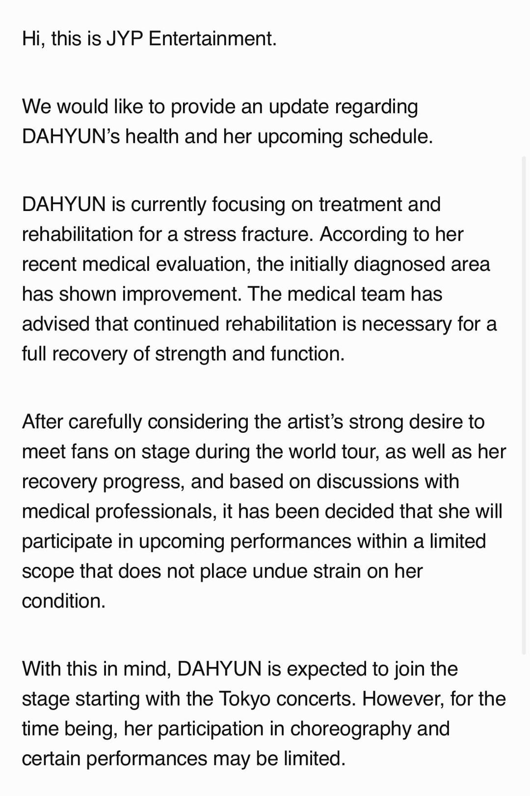 260424 Twice Fans Update – Notice Regarding TWICE DAHYUN’s Health and Upcoming Schedule Dahyuns fans health Notice Schedule Twice Upcoming update