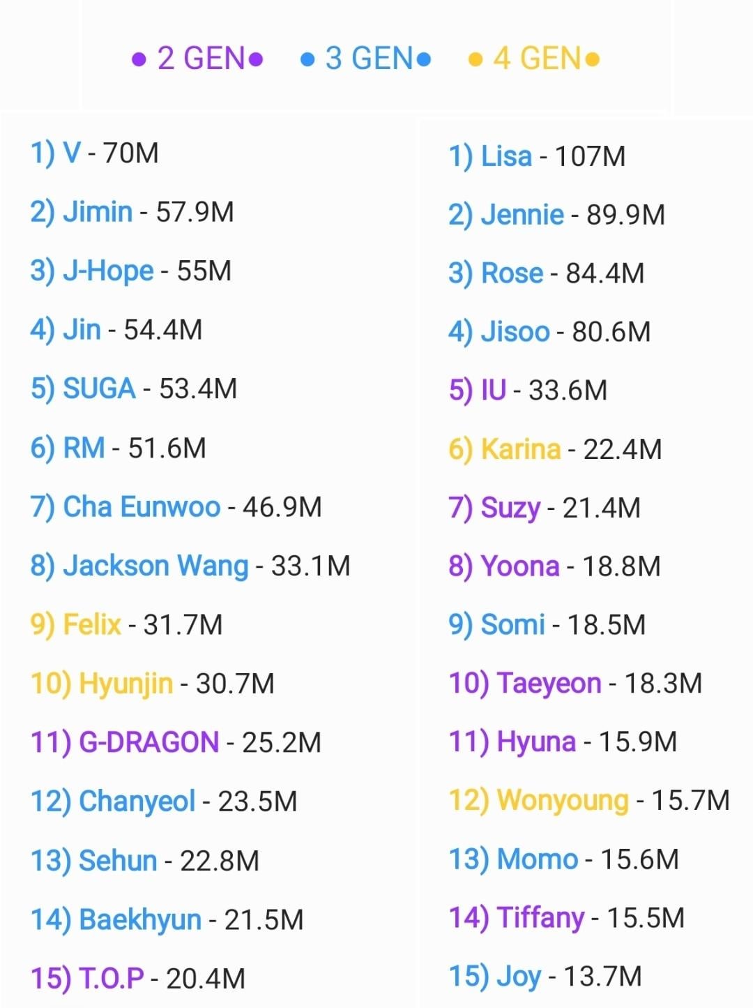 Glad people enjoyed the Youtube one, decided to do it now for Instagram solo Idols accounts to see more individual star power ✨️